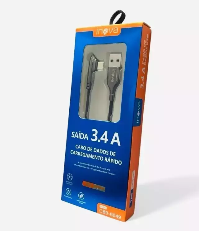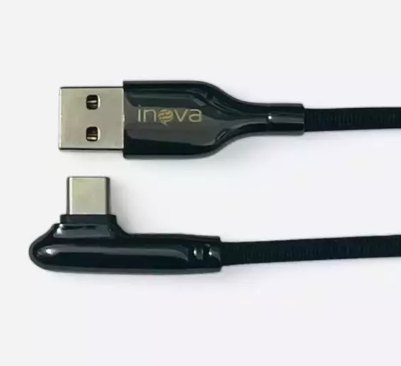 Optimiza tu carga con el Cable mallado tipo C vuelta 90 grados 3.4A de INOVA. Este cable es ideal para quienes buscan una carga súper rápida y eficiente, gracias a su capacidad de 3.4A.