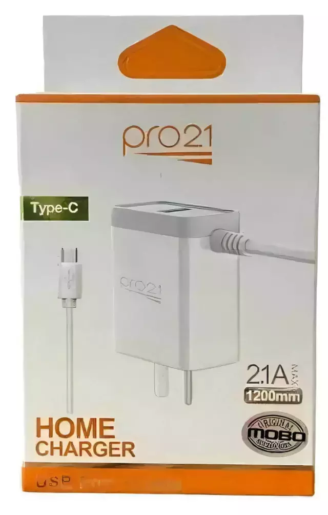 Cargador pro21 Tipo-C 2.1A MAX 1 Puerto USB Cable Fijo