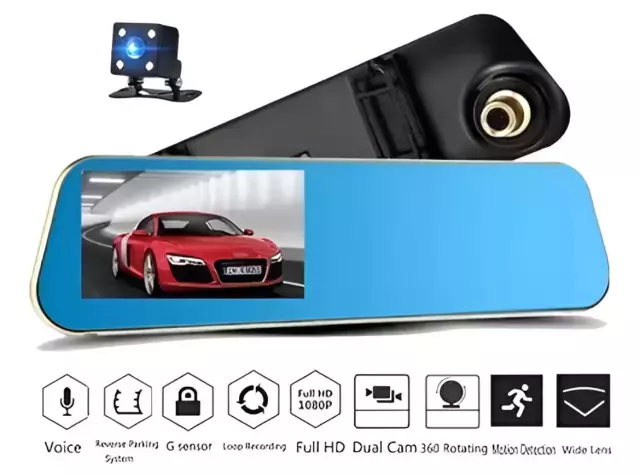 Espejo Retrovisor Doble Camara seguridad Auto De Grabacion Pantalla 4,3