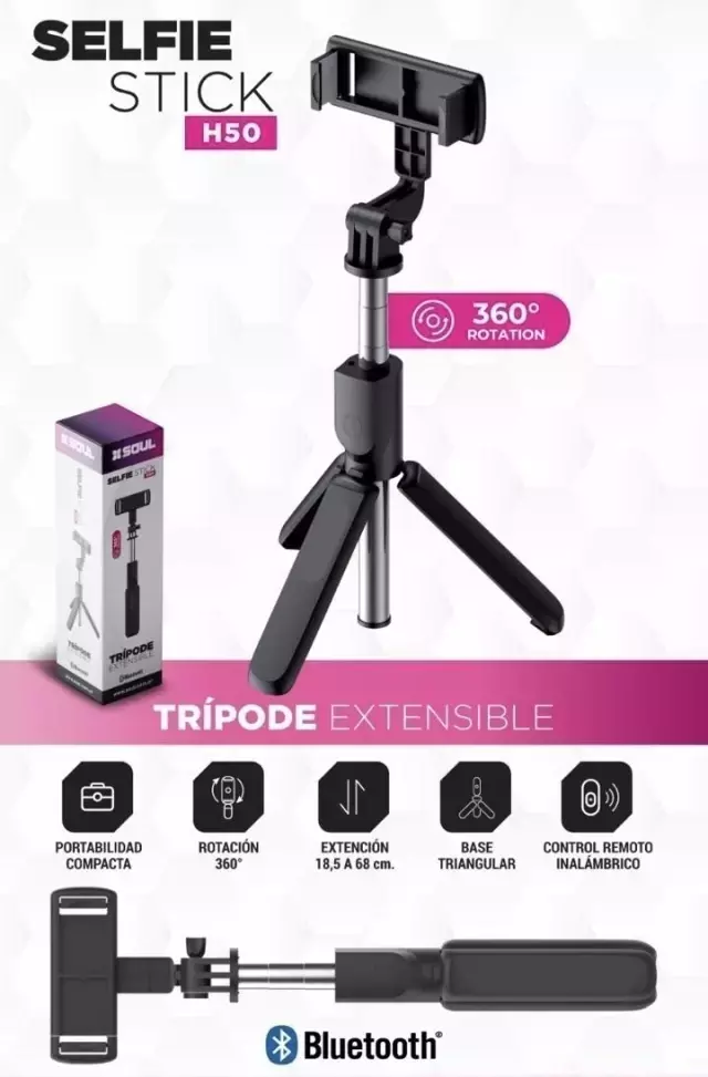 Palo Selfie Stick Bastón Bluetooth Con Rotación 360 Soul H50