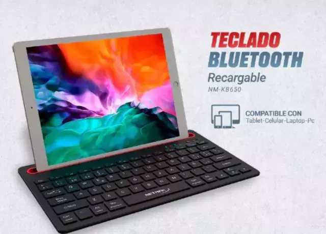 Teclado Portátil Inalambrico Bluetooth Recargable NETMAK KB-650, blanco y negro.